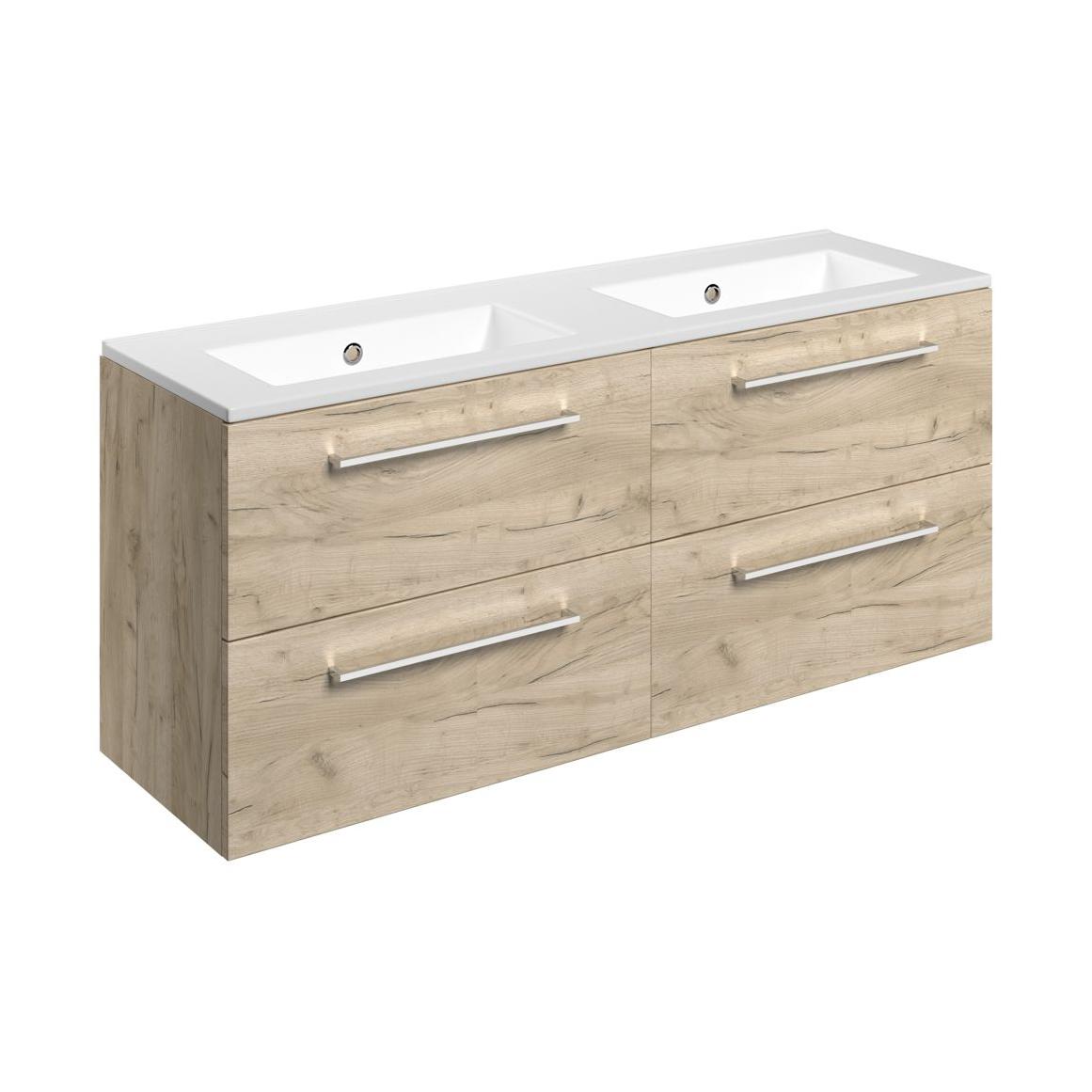 Base 1210mm Wall Hung 4 Drawer Basin Unit & 2TH Thin Edge Basin – Oak