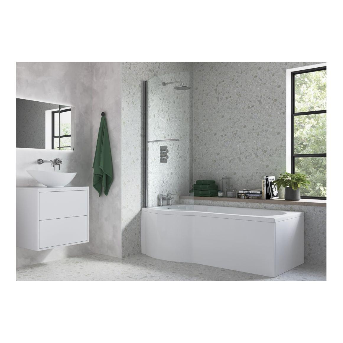 760x1500mm P Shape Bath Screen (6mm) – Chrome