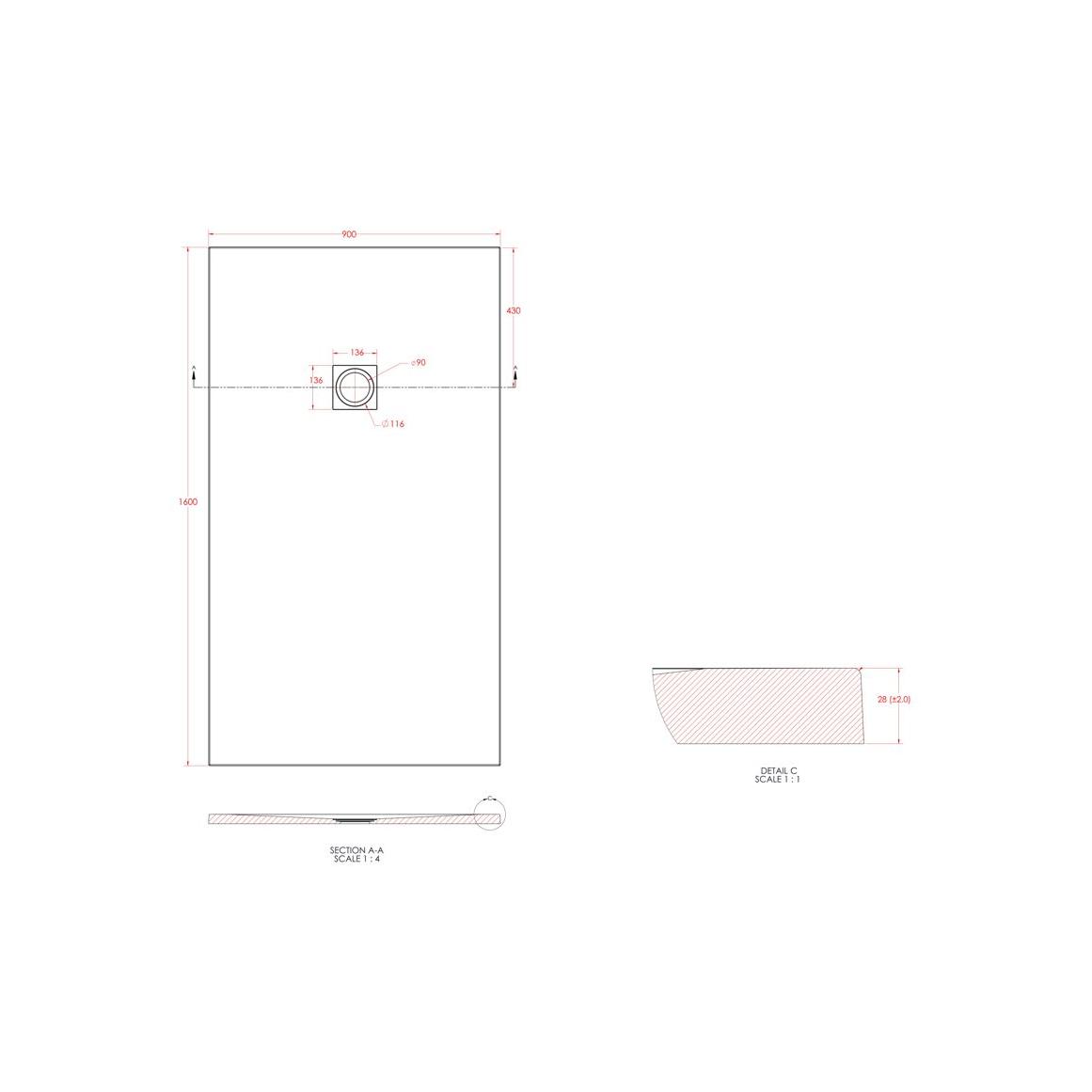 25mm 1600x900mm Slate Effect Ultra-Slim Rectangular Tray & Waste quantity