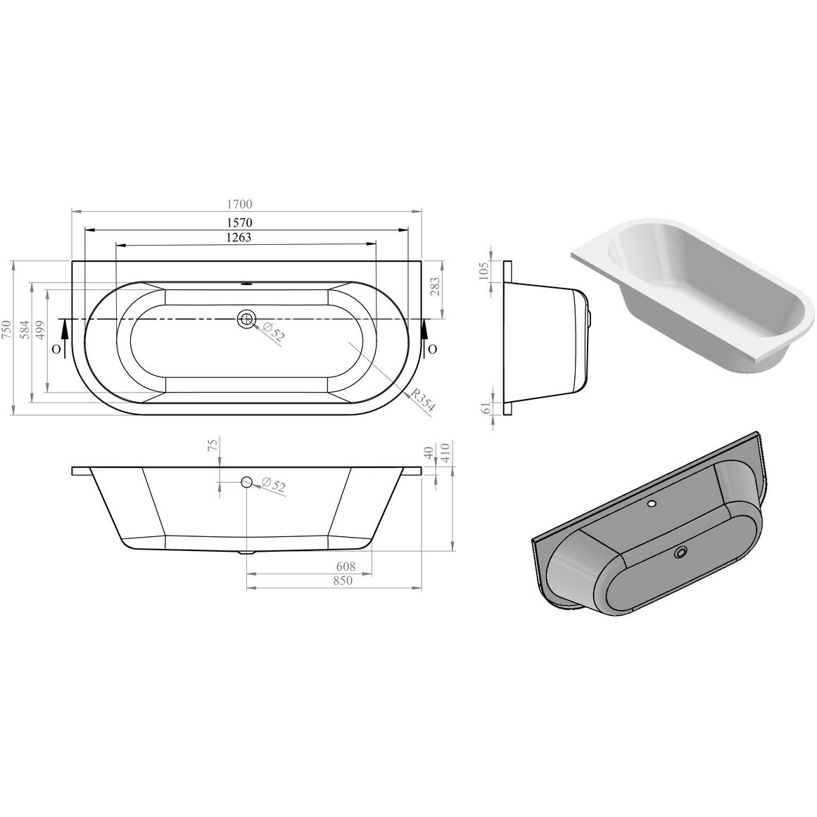 - This product is a replacement for DIBR0006 Decadence Double End Back To Wall 1700x800x545mm 0TH Bath which is now discontinued