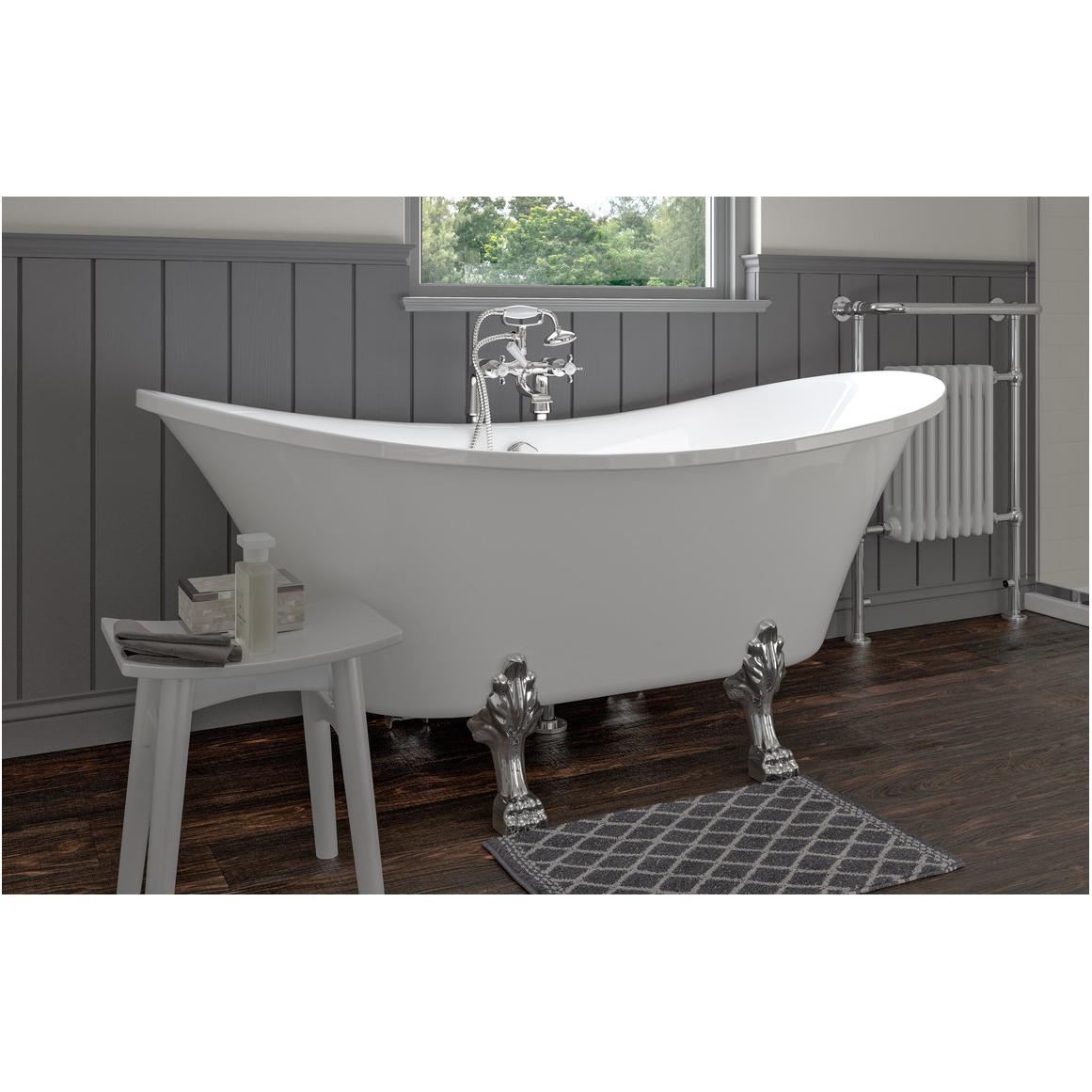 - Comes with chrome ‘lions paw’ design bath feet